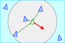 - Cohesion ── 群れの中心に寄る