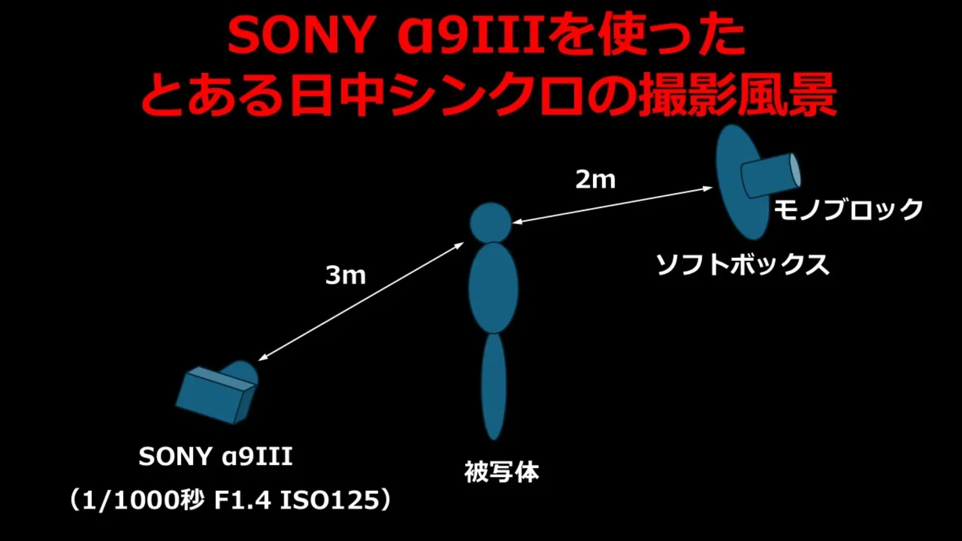 - カメラ(=ストロボ)から被写体まで:3m