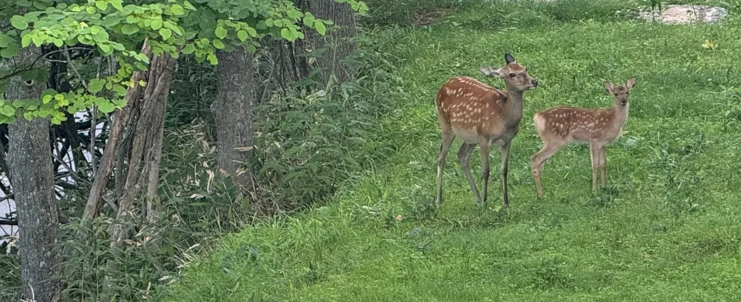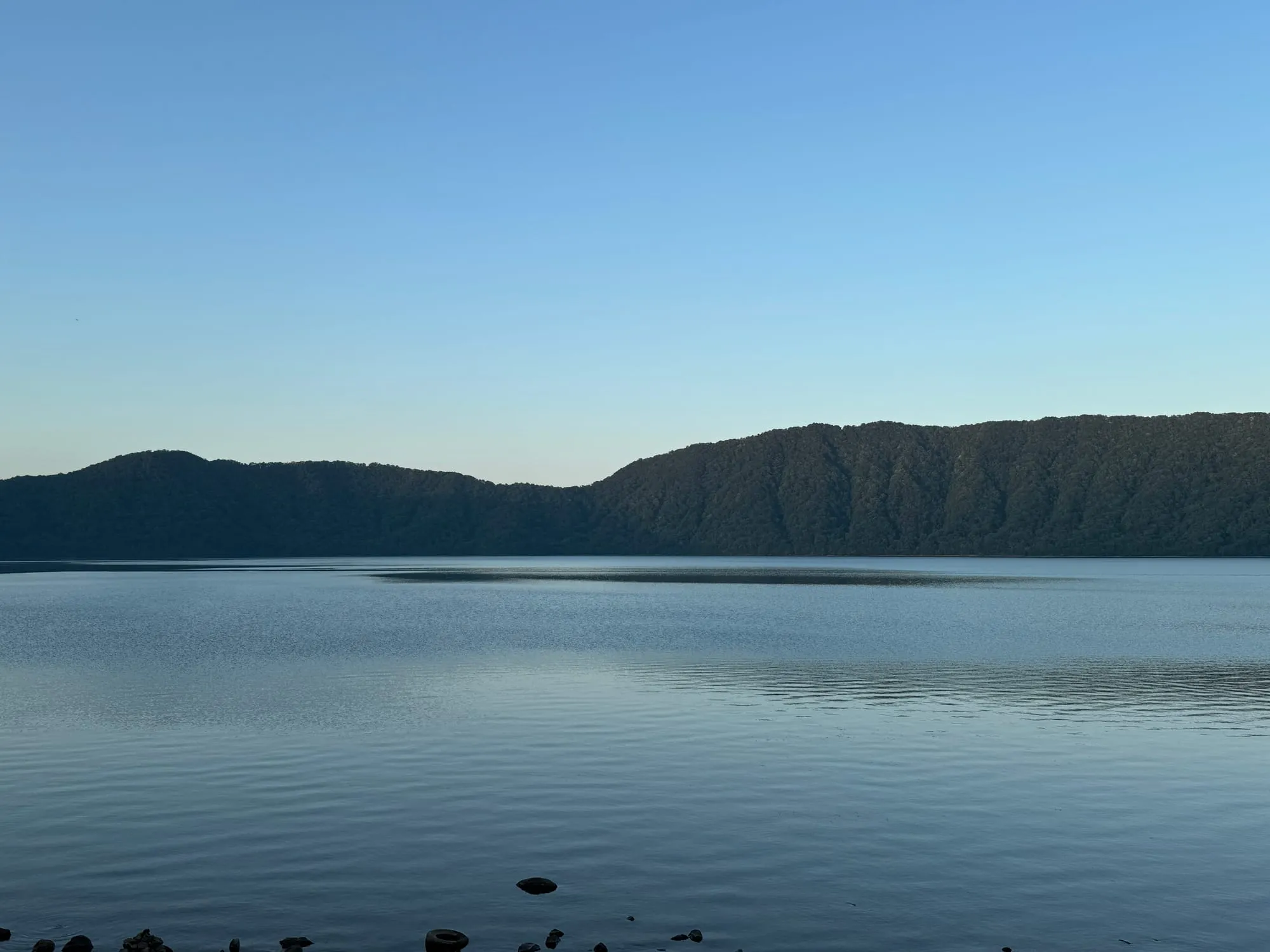 从大汤沼乘出租车,途中偶遇梅花鹿,感觉那天自己好幸运!大约10分钟的车程,我便来到了俱多乐湖。这座火山口湖被茂密的原始森林环抱,周长约8公里,最深处达148米。
