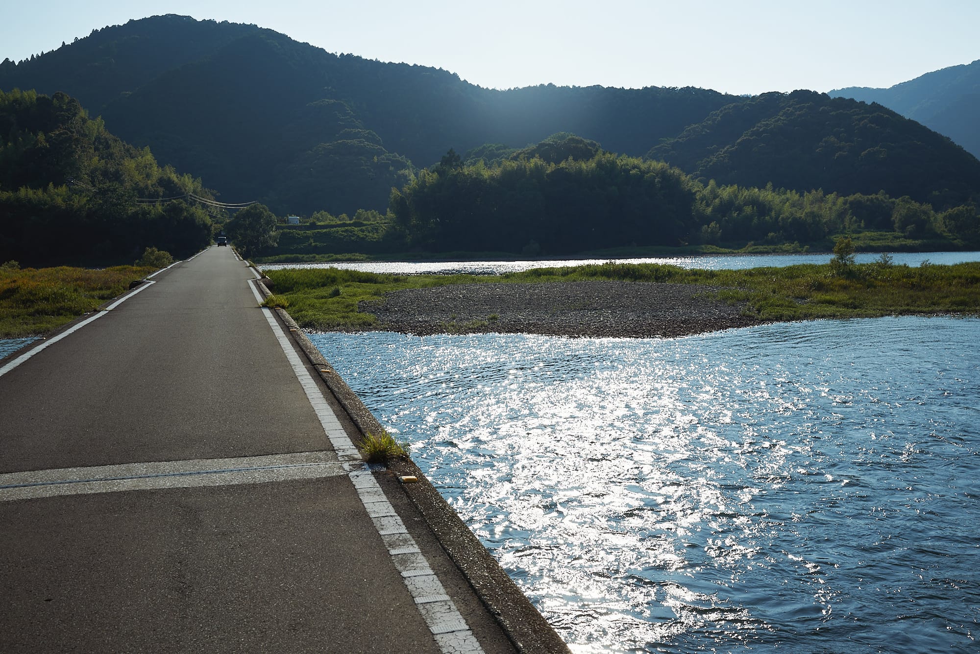 沈下橋で有名なので、一番有名なところに行きたく、佐田沈下橋(今成橋)という橋に向かいました。四万十川の最下流にある沈下橋ですが、最長とのことで290メートルあるそうです。