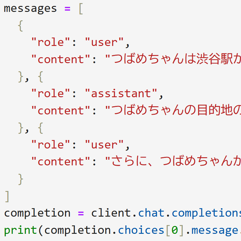 「京都御所は日本の歴史的建造物です。」(17文字)を分割すると、以下の10トークンが得られる。