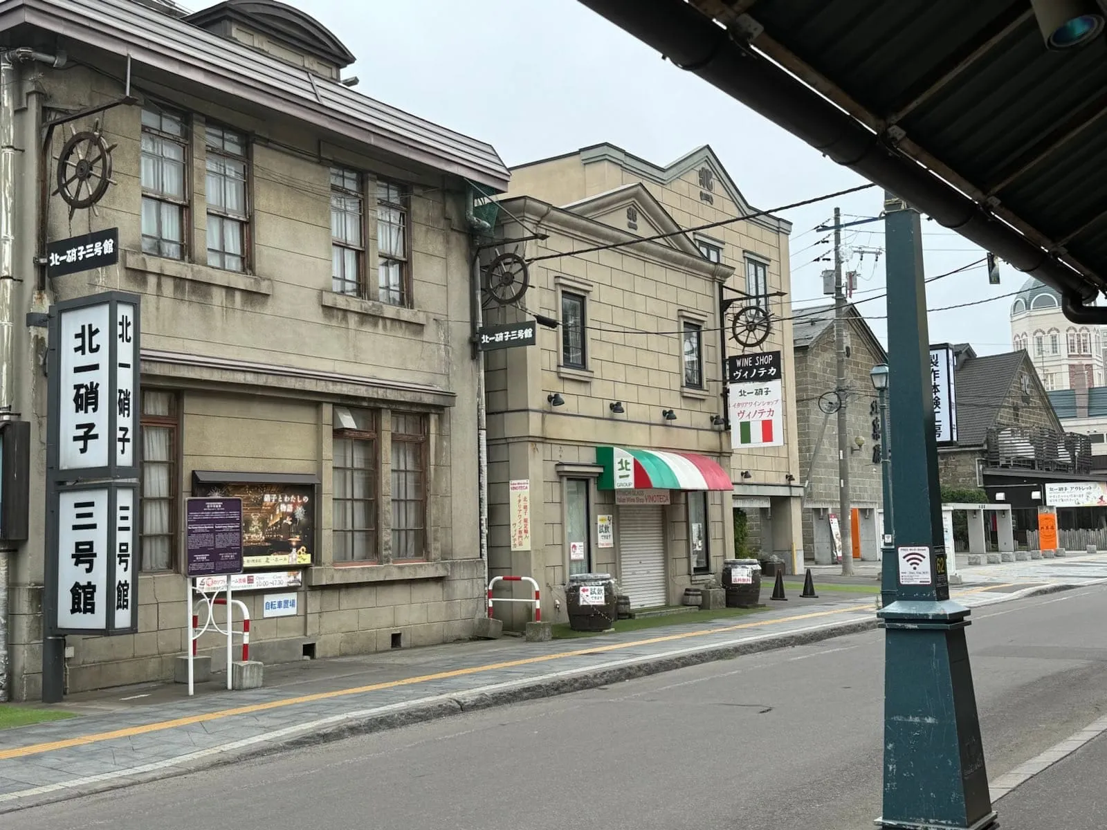 大约骑行五分钟左右,我便来到了色内街。这里曾经是小樽金融业的心脏,虽然昔日的荣华繁华不再,但那些石制建筑如同这座城市历史的守望者依然威严挺拔。